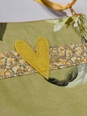 This quote purse from Touchy Feely Textiles has a vintage feel to it, measuring 20cm wide x 17cm deep, made with a classic floral print fabric in rich golds and greens and a soft green lining.